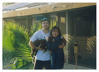 Flashback to 1992...... This picture is of Russ when he was about 24, and his older sister, Lisa, and his dog Brandy. Cute huh? They are standing in front of the house he lived in with about 4 other guys. So you can imagine what the inside of this house looked like. This house was totally disgusting --- never clean, you could tell a bunch of college guys lived in this house. When I met Russ a few years later, he didn't live here anymore, but we went by to visit his friends, and it looked like it hadn't been cleaned in about 5 years. Anyways ---- I can not believe that 16 years have passed since this picture.